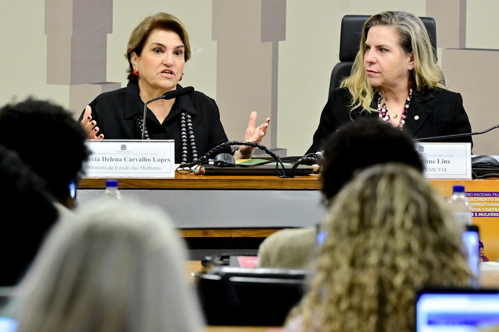 Em seminário no Congresso Nacional, a ministra das Mulheres reforçou a importância do Ligue 180, mas admitiu que muitas vítimas ainda enfrentam julgamentos e infraestrutura precária ao buscar ajuda. Foto: Geraldo Magela/Agência Senado.